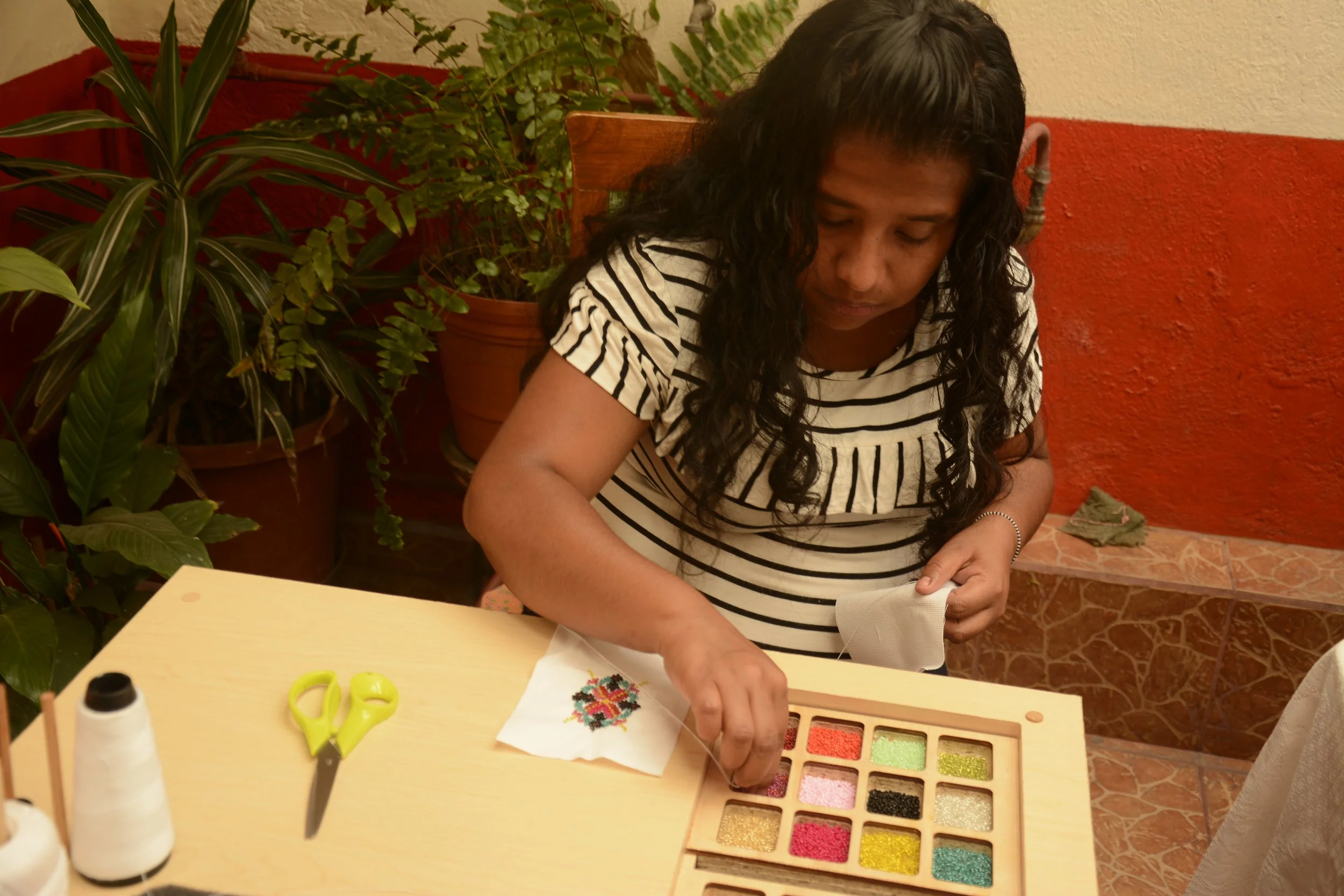 This project centers around the implementation of IDEO's Human-Centered Design principles to create a fully functional workspace tailored specifically for bead embroidery. This workspace was donated to five skilled artisans with the aim of enhancing their working conditions through ergonomic improvements.